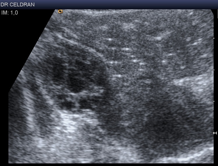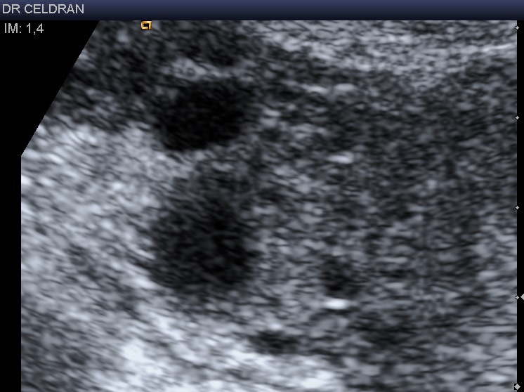 Autre patiente : ovaire droit parfaitement visualisé par voie suspubienne avec une sonde basse fréquence